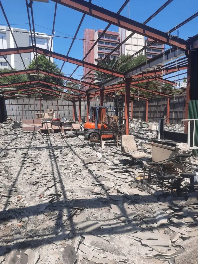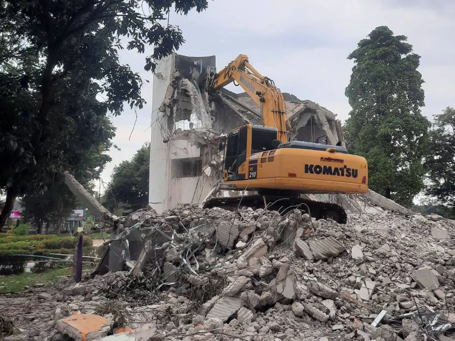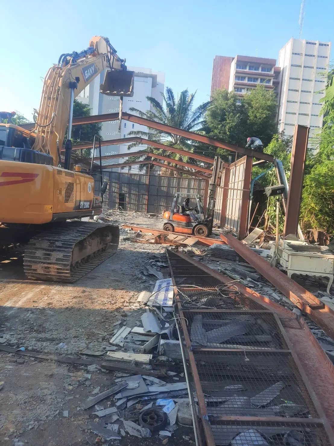 เข้าทำการรื้อถอนเจาะย่อยเศษปูนด้านบน และ รื้อถอนฐานราก เช่น คานล่าง ตอม่อ ออกทั้งหมด เพื่อสะดวกต่อการก่อสร้างอาคารใหม่